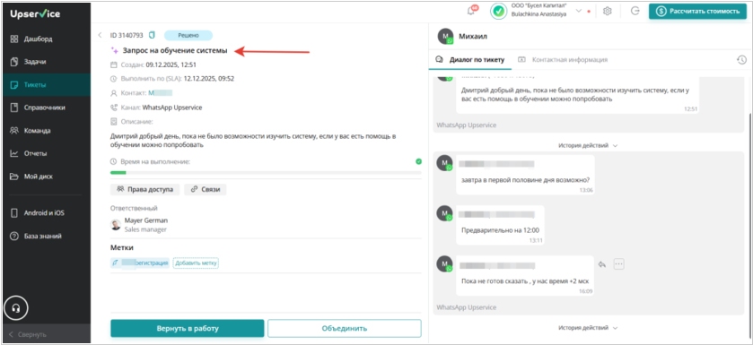 2025. В Upservice реализовано удаление сообщений и комментариев в системе по учету заявок