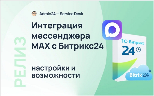 В новом релизе Админ24 добавлена интеграция мессенджера MAX с Битрикс24, позволяющая вести переписку от имени компании прямо в CRM. В возможности интеграции входит: автоматическое создание лидов/сделок и комментариев из сообщений, гибкие уведомления сотрудников, возможность отправки сообщений через бизнес-процессы, интеграцию с открытыми линиями и смарт-процессами, а также ограничение доступа к чатам только для ответственных пользователей. Для подключения требуется установить приложение Админ24 из Маркета, активировать лицензионный ключ и авторизовать аккаунт MAX по QR-коду.