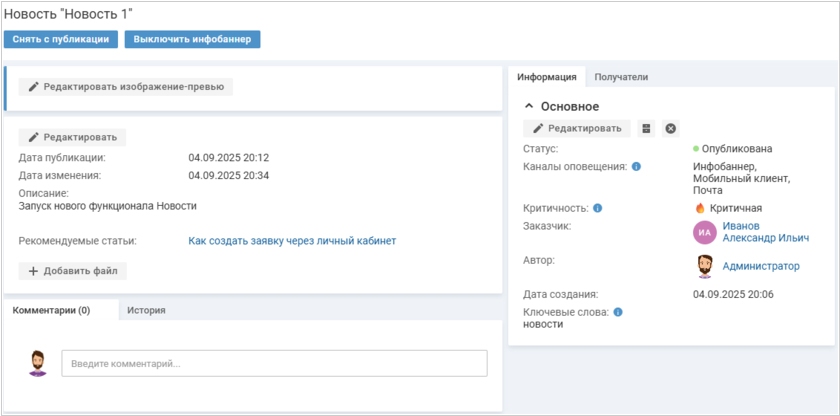 04.12.25. В ITSM 365 расширили возможности работы с новостями