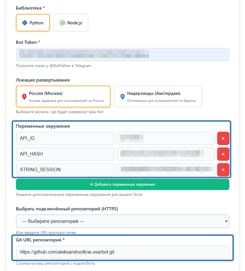 Профессиональный хостинг ботов для Telegram, Discord, VK, WhatsApp, Slack и Twitch. Современная платформа развертывания ботов и сервисов автоматизации ИИ.
